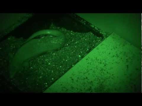 産卵床を掘る行動を約1時間続け、穴の方へお尻をむけて23:00過ぎ、産卵が始まった。